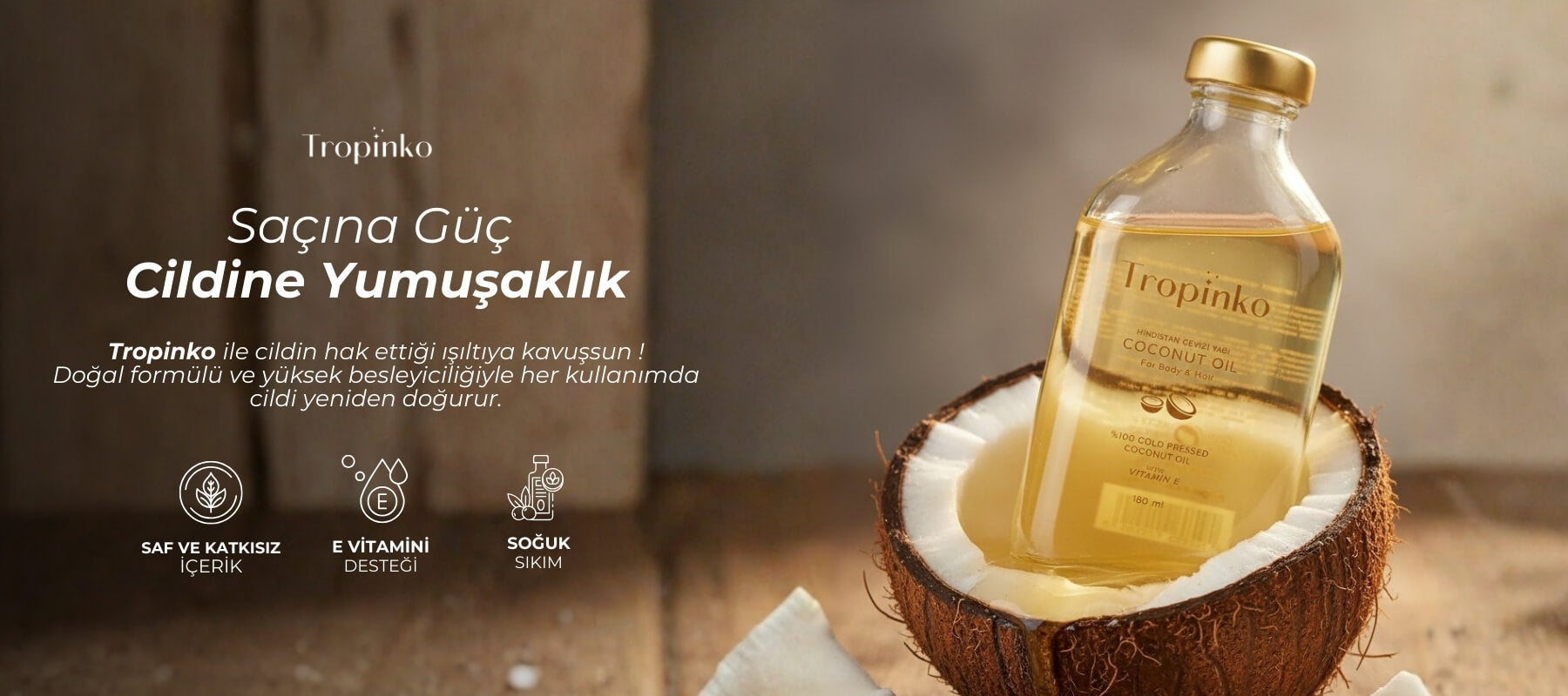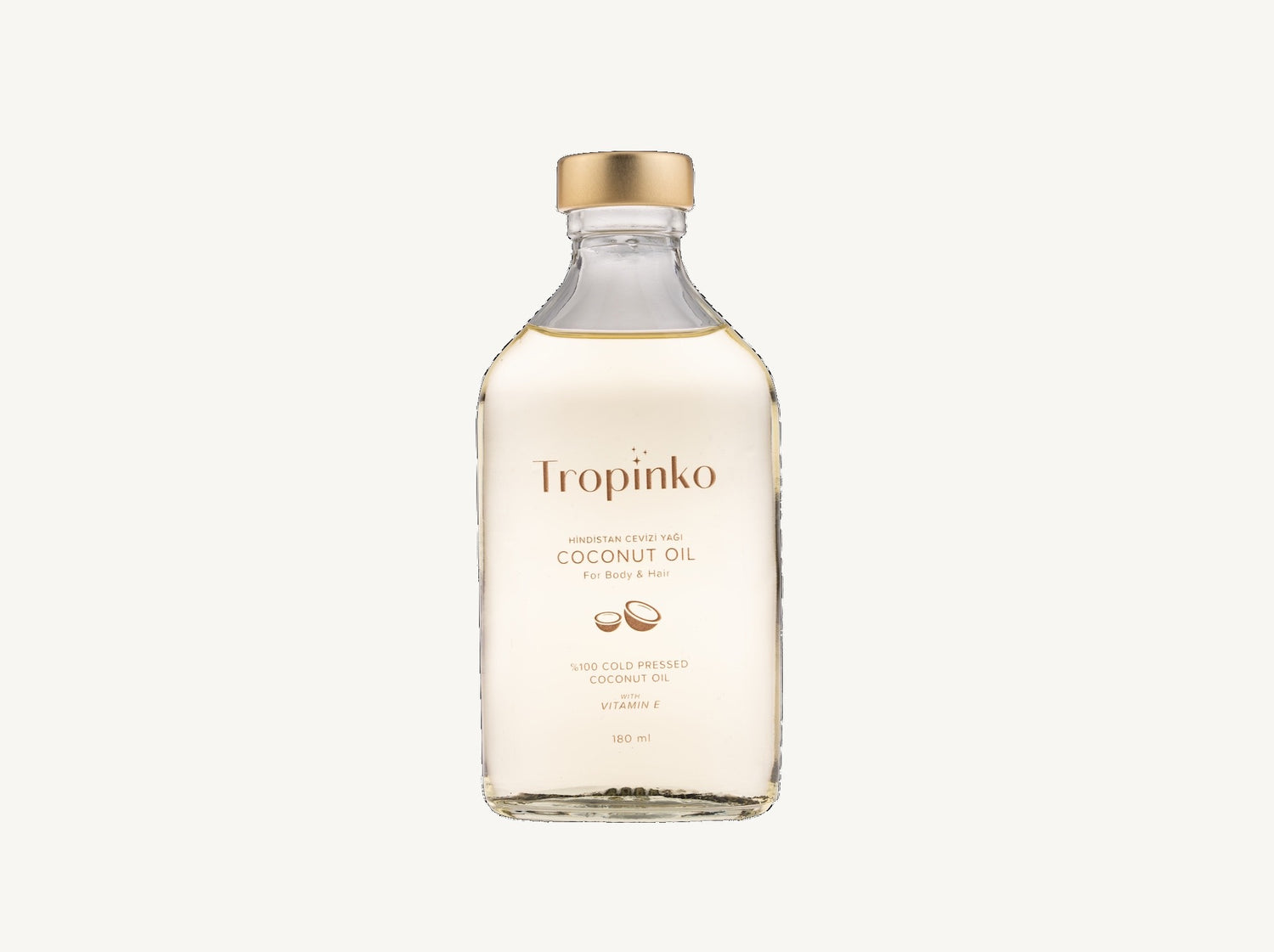 Tropinko soğuk sıkım Hindistan cevizi yağı; vücut ve saç bakımında kullanılan doğal bir nemlendiricidir. Soğuk sıkım yöntemi sayesinde besin değerini korur. Saç ve vücut bakımına uygundur. Duş sonrası nemli cilde veya saç uçlarına masaj yaparak uygulanabilir.